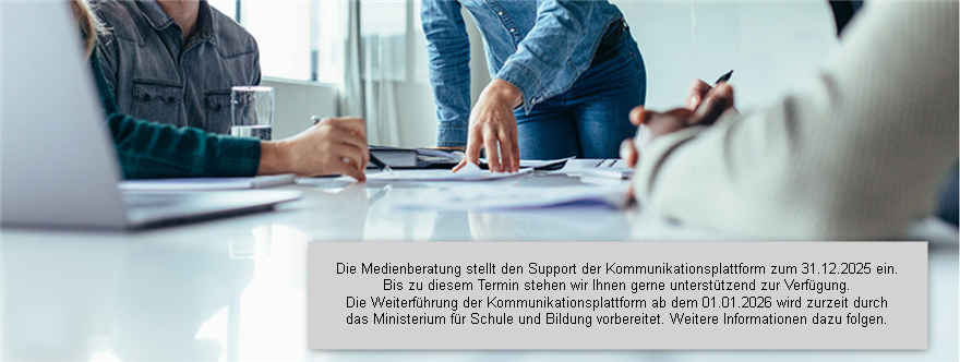 Die Medienberatung NRW organisiert und koordiniert im Auftrag des Ministeriums für Schule und Bildung des Landes Nordrhein-Westfalen bis zum 31.12.2025 die Bereitstellung einer internen Kommunikationsplattform für die Moderatorinnen und Moderatoren der staatlichen Lehrkräftefortbildung und die Mitarbeiterinnen und Mitarbeiter im Bildungsbereich.